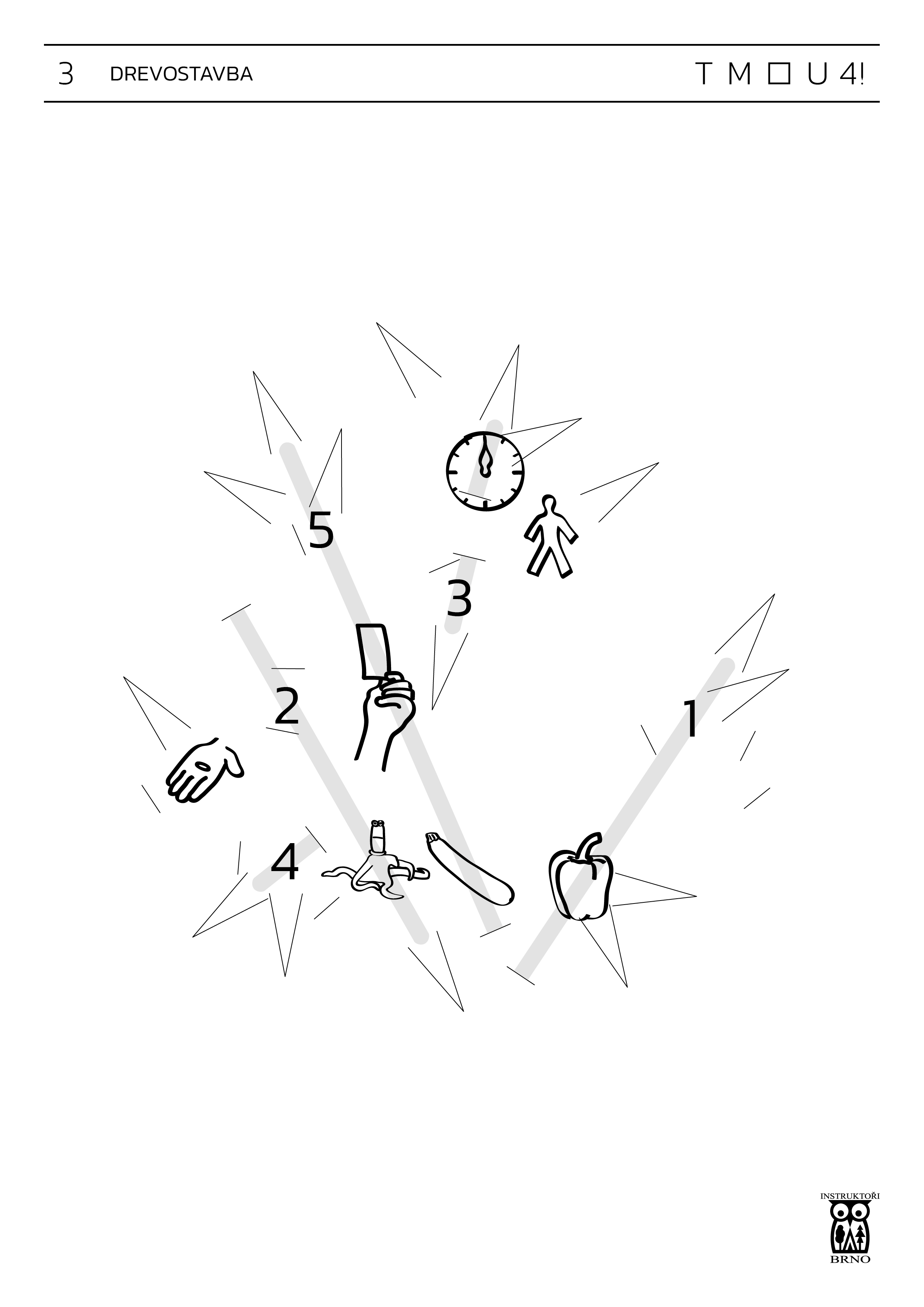 K luštění je potřeba sada šestnácti pastelek, které dostaly týmy na druhém stanovišti. Můžete si je nasimulovat vystřihnutím z papíru, ale je třeba počítat s tím, že představují 3D objekty.